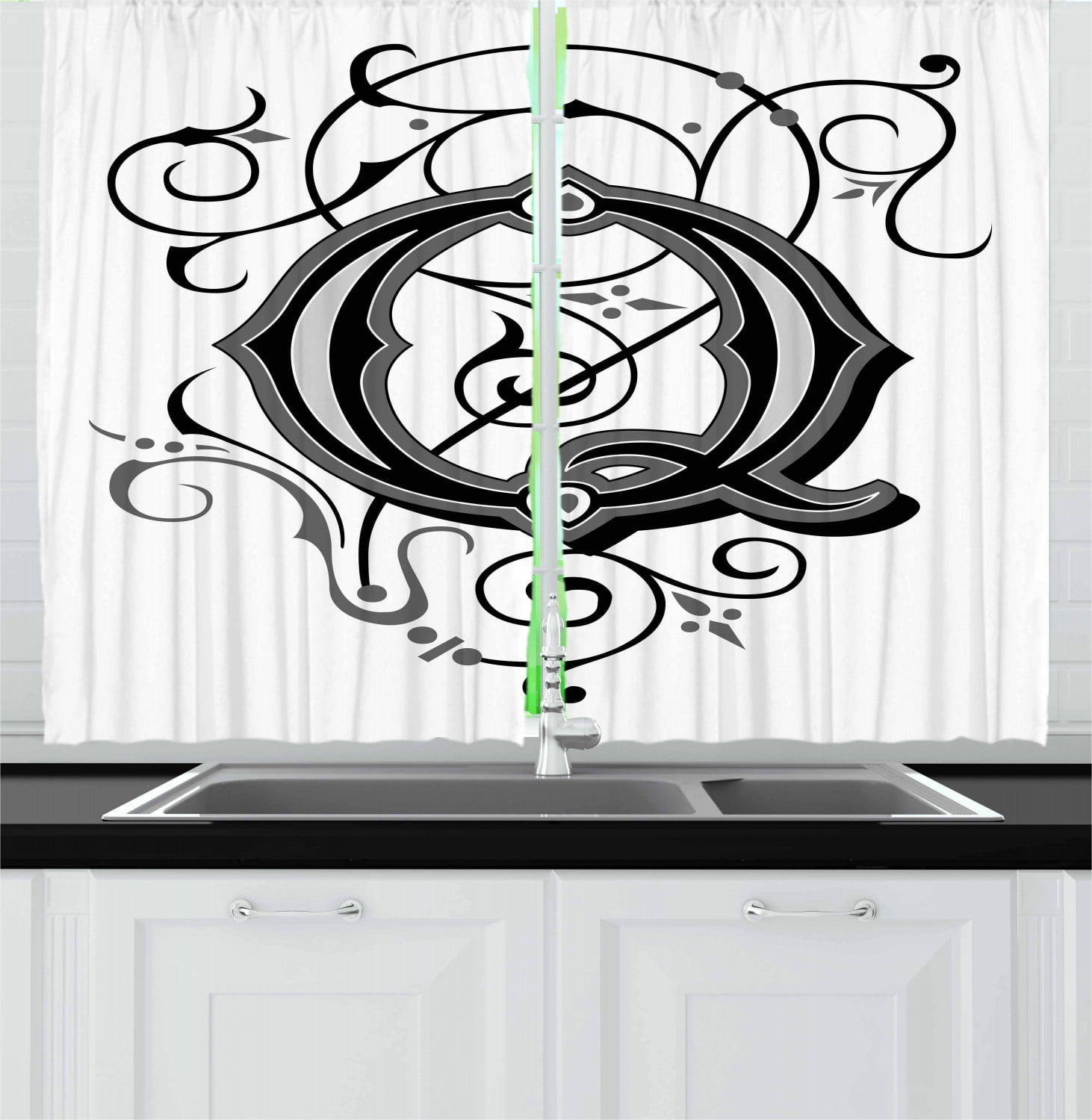 Letter Q Curtains 2 Panels Set Flowers Flourishing Gothic Q Words Writing Artistic Style Aged Typography Window Drapes For Living Room Bedroom 55w X 39l Inches Black Grey White By Ambesonne